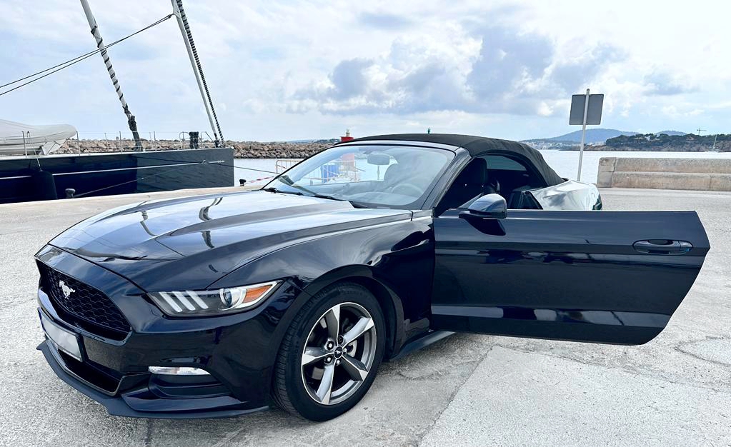 There is a private swimming pool, and a convertible car (Ford Mustang) is available at an extra cost.